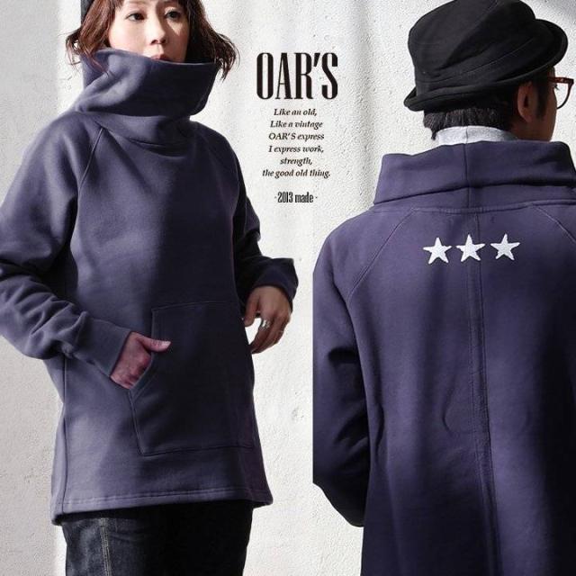 首ゆったり タートルネック スウェット 暖かい 裏起毛 USA コットン 綿100 しっかり 丈夫 厚手 柔らか 冬 袖リブ 重ね着 着痩せ ポケット メンズ レディース 星 バックプリント ハイネック カジュアル パティ OAR’S オールズ