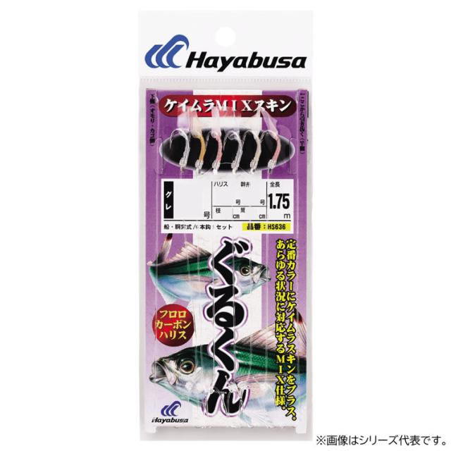 ハヤブサ ぐるくんサビキ ケイムラMIXスキン 6本鈎 10号 HS636 (サビキ仕掛け 釣り)