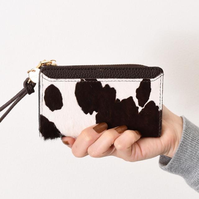 ●肌触りの良いハラコ素材とシボ感のあるソフトなフェイクレザーの二つ折りフラグメントケース