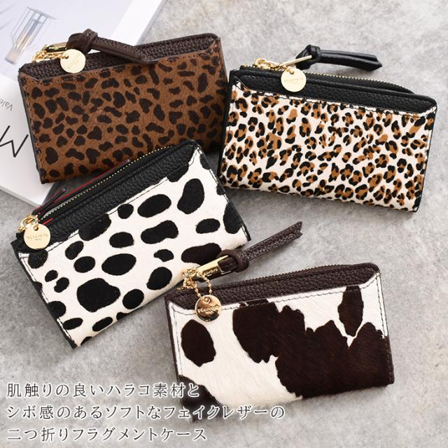 新作 二つ折り フラグメントケース ハラコ レディース 財布 コンパクト カードケース カード入れ 小銭入れ ピソラロ Pisoraro 本革 牛革 小さめ 財布 アニマル カウレザー フェイクレザー おしゃれ