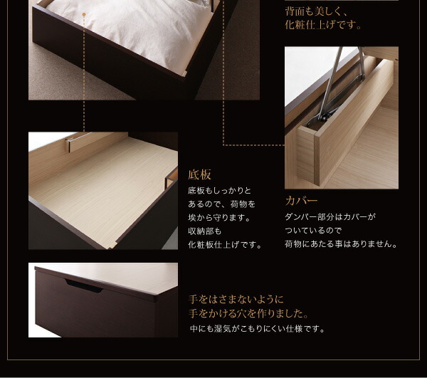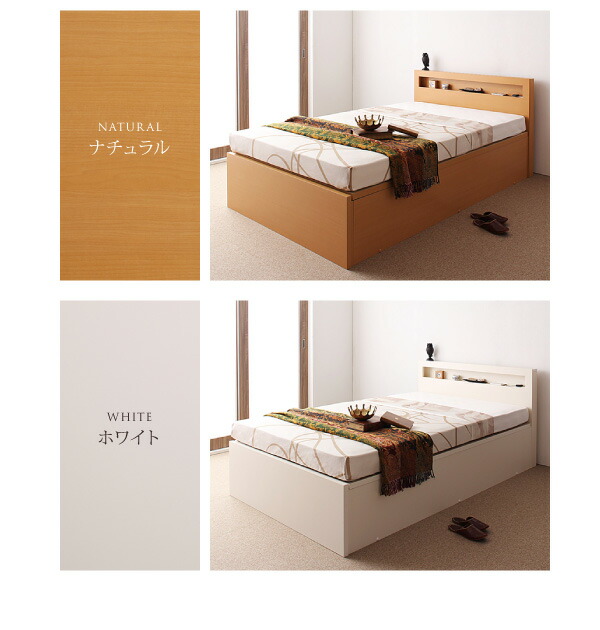 ダークブラウン、白 ホワイト、ナチュラルから選べる 収納付きベッド 収納 収納付き 収納ベッド 大容量 収納ボックス 布団 敷き布団 薄型プレミアムポケットコイルマットレス付き 縦開き セミシングル 深さラージ 組立設置付 組立設置付 薄型プレミアムポケットコイル