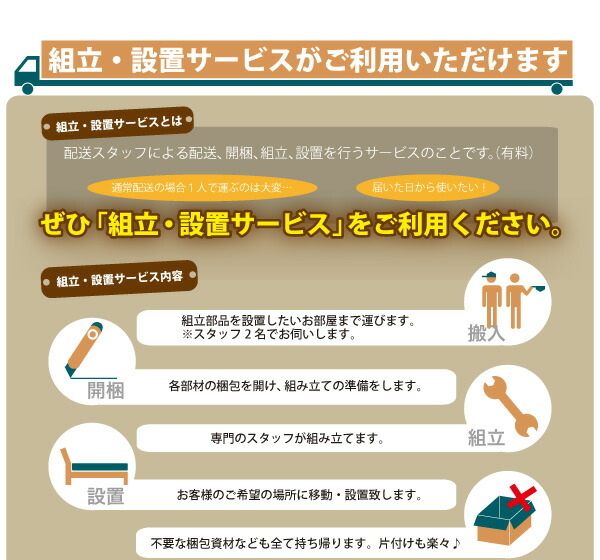 ●商品到着後7日以内の初期不良につきましては、メールにてご連絡ください。確認次第、速やかに無償交換にて対応いたします。ただし、組立を要する商品につき、組立サービス付き以外でのご注文の場合は、組立済み商品の解体・梱包および交換品到着後の再組立てをお客様ご自身で行っていただくことが前提となります。上記対応がいただけない場合、初期不良対応