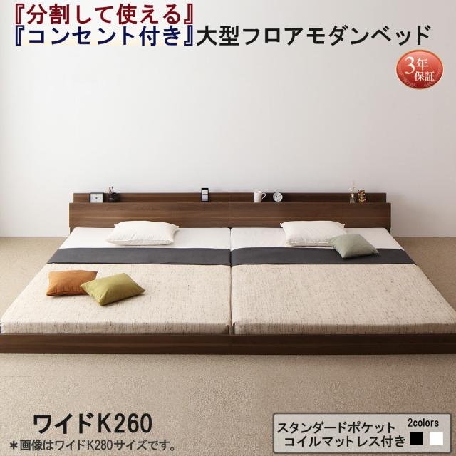ファミリーベッド 連結ベッド 大型ベッド ファミリー ベッド 連結 家族ベッド ローベッド フロアベッド 北欧 おしゃれ スタンダードポケットコイル マットレス付き ワイドK260(SD+D) スタンダードポケットコイルマットレス付き ワイドK260(SD+D)