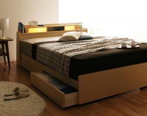 商品仕様: 照明・棚付き収納ベッド ポケットコイルマットレス付き セミダブルベッド