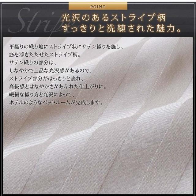 ベッドルームの雰囲気をグッと引き立てる、高級感のあるストライプサテン素材。