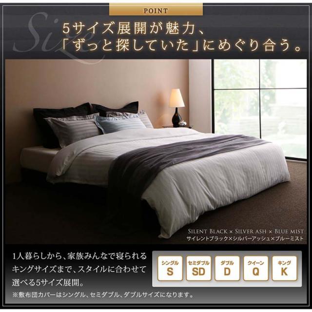 ロイヤル白 ホワイト、モカブラウン、サイレント黒 ブラック、ミッドナイト青 ブルー、サンドベージュ、ワイン赤 レッド、ベビーピンク、シルバーアッシュ、青 ブルーミストから選べる ホテルスタイル ストライプ サテン カバーリング 布団カバーセット ベッド用(枕カ ★9色から選べる 綿混サテン ホテルスタイルストライプカバーリング