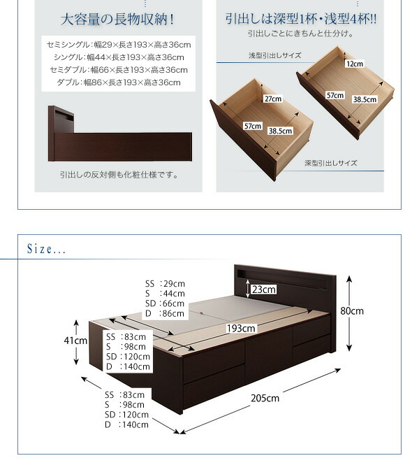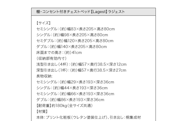 商品仕様: お客様組立 棚・コンセント付きチェストベッド 薄型プレミアムボンネルコイルマットレス付き シングルベッド