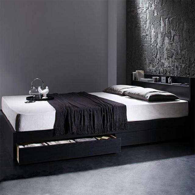ダブルベッド 白 ホワイト、黒 ブラックから選べる ベッドフレーム マットレス付き 収納付き 収納 収納ベッド 白 黒 白 ホワイト 黒 ブラック 宮付 おしゃれ マットレス付 スタンダードボンネルコイルマットレス付き 棚・コンセント付き収納ベッド