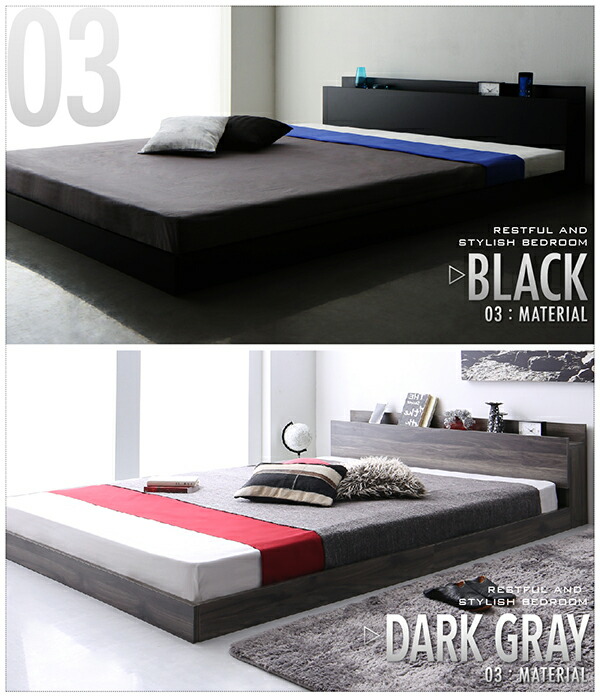商品仕様: ライトグレー 灰色、ダークグレー 灰色、黒 ブラックから選べる 棚・コンセント付きフロアベッド 国産カバーポケットコイルマットレス付き ダブル 組立設置付 組立設置付 国産カバーポケットコイルマットレス付き ダブル