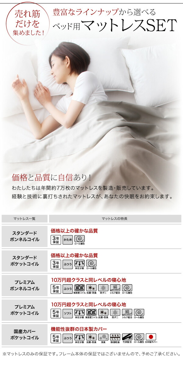 (キーワード: 安眠 健康 睡眠 快適 清潔 高級 流行 デザイン おしゃれ オシャレ 耐久 マットレスセット マッ