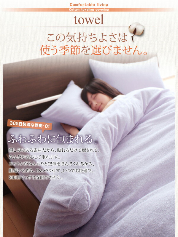 コットンがふんわりと空気を含んでくれるから、肌寒いときも、ひんやりせず、いつでも快適で、365日ぐっすり安眠できそう。