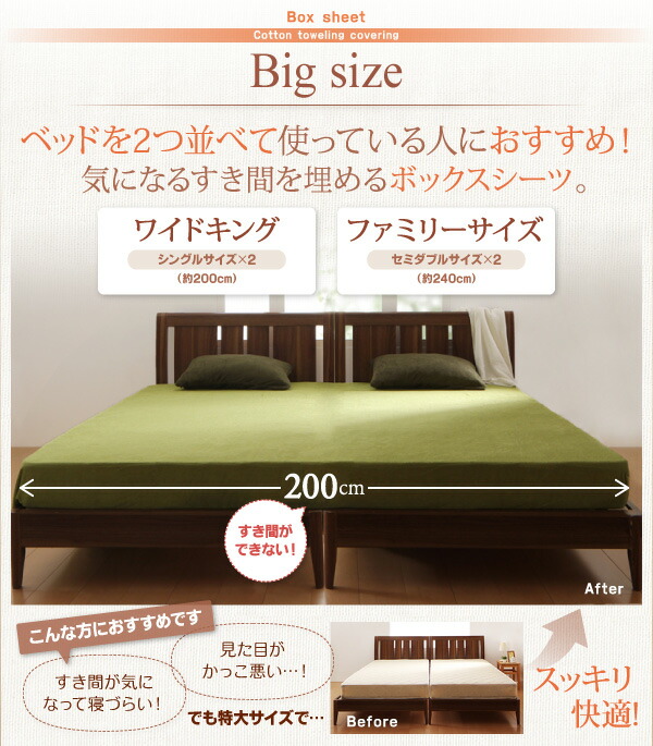 ボックスシーツに特大サイズ(ワイドキング・ファミリーサイズ)