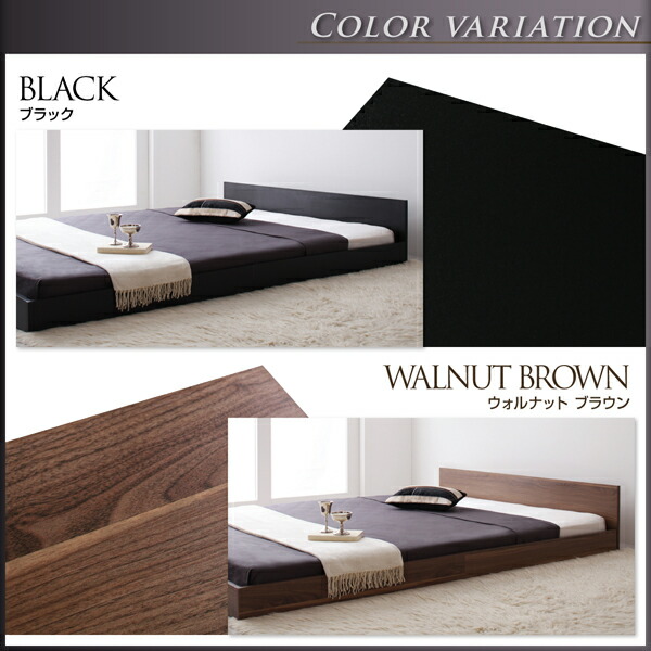 セミダブルベッド 木目 茶色 ウォルナットブラウン 茶、黒 ブラックから選べる シンプルヘッドボード・フロアベッド スタンダードポケットコイルマットレス付き 組立設置付 組立設置付 スタンダードポケットコイルマットレス付き