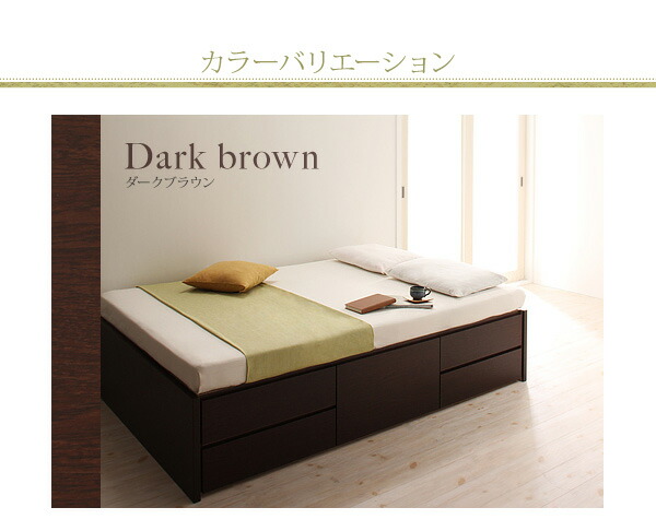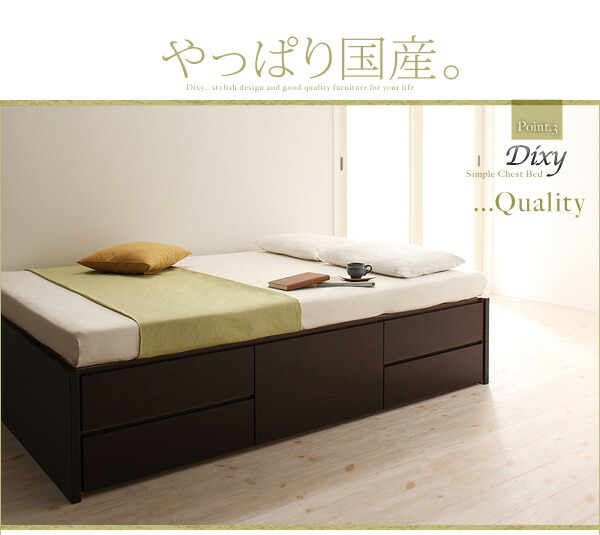 セミシングルベッド 茶色 ダークブラウン 茶 こげ茶、ナチュラル、白 ホワイトから選べる お客様組立 シンプルチェストベッド 薄型プレミアムポケットコイ