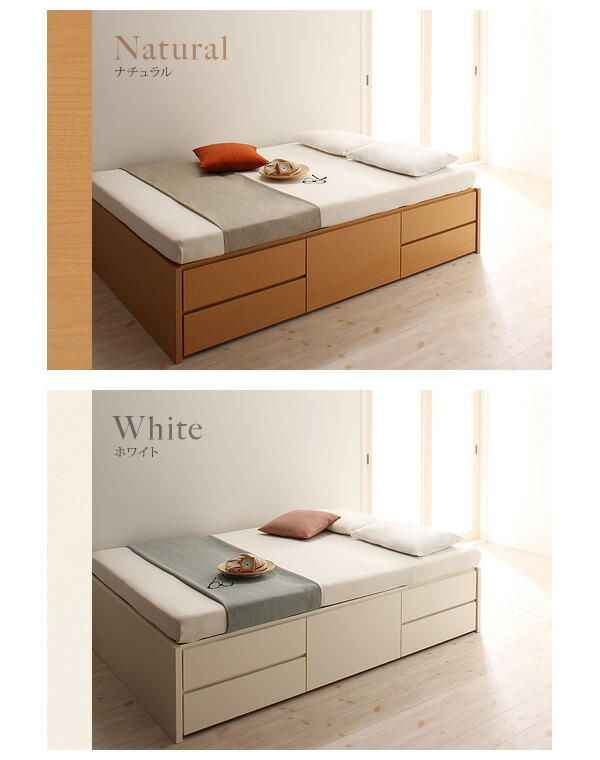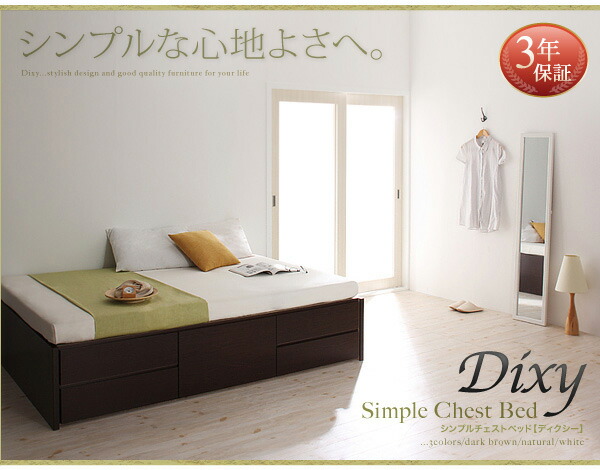 セミシングルベッド 茶色 ダークブラウン 茶 こげ茶、ナチュラル、白 ホワイトから選べる お客様組立 シンプルチェストベッド 薄型プレミアムポケットコイルマットレス付き