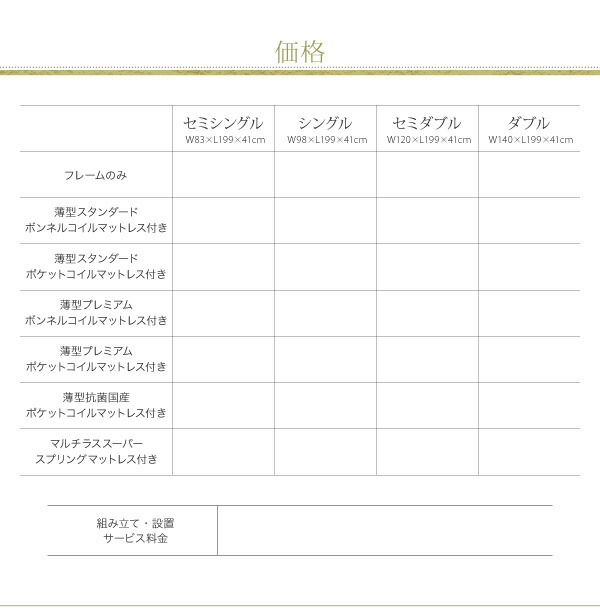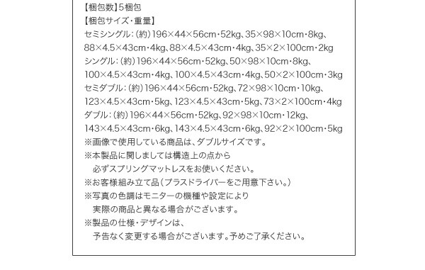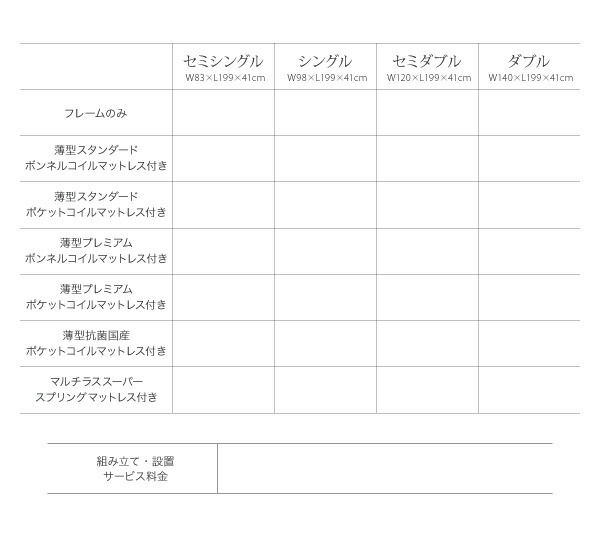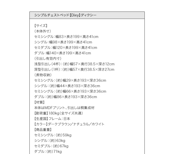 商品仕様: お客様組立 シンプルチェストベッド 薄型プレミアムポケットコイルマットレス付き セミシングルベッド