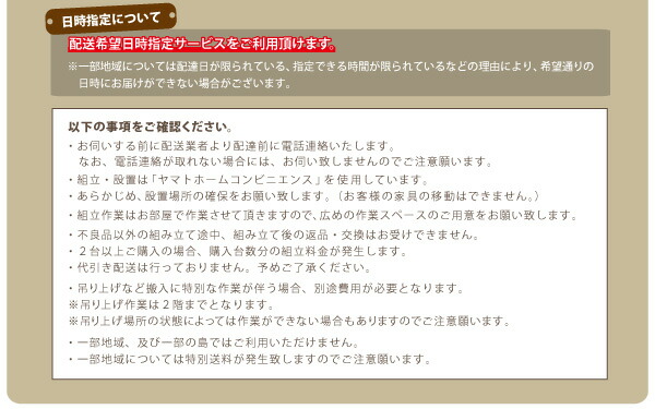 ※日時指定は到着予定を保証するものではございません。交通状況や配送会社の都合によりご依頼通りに配送ができな場合がございます。