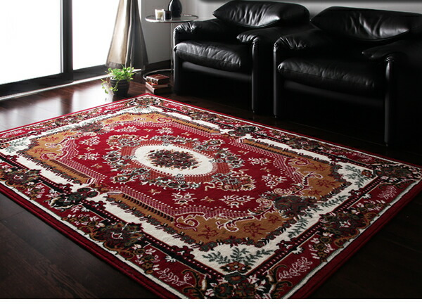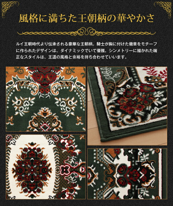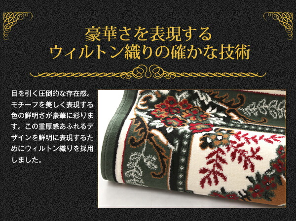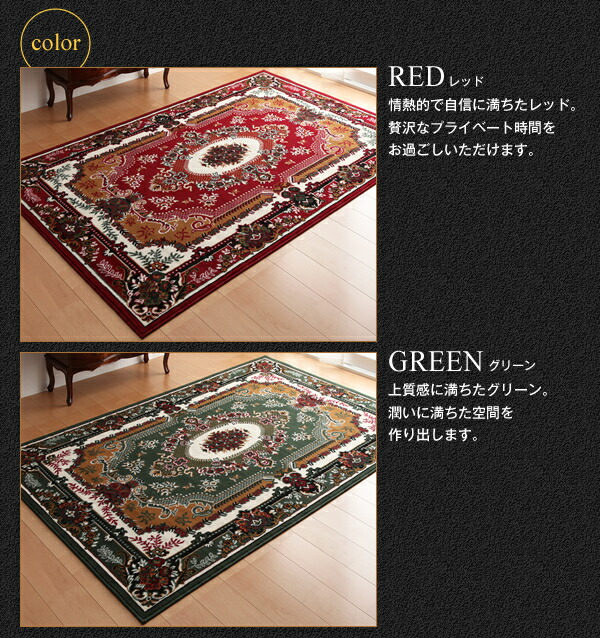 商品仕様: 赤 レッド、緑 グリーンから選べる ラグ ベルギー製ウィルトン織りクラシックデザインラグ 160×230cm