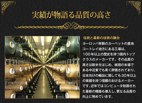 "ヨーロッパ有数のカーペットの産地コートレイ地方にある工場は、100年以上の歴史を持つ国内トップクラスのメーカーです。