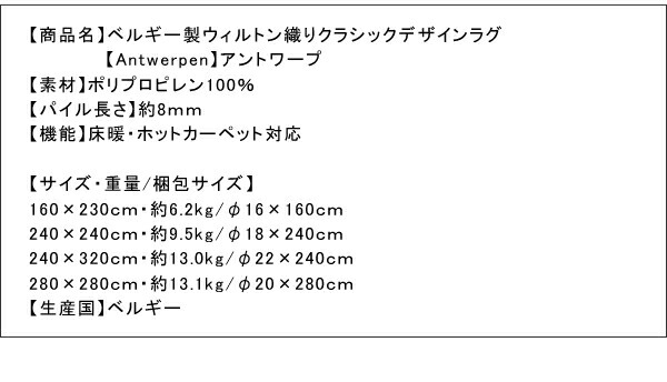 【商品名】ベルギー製ウィルトン織りクラシックデザインラグ 【Antwerpen】アントワープ