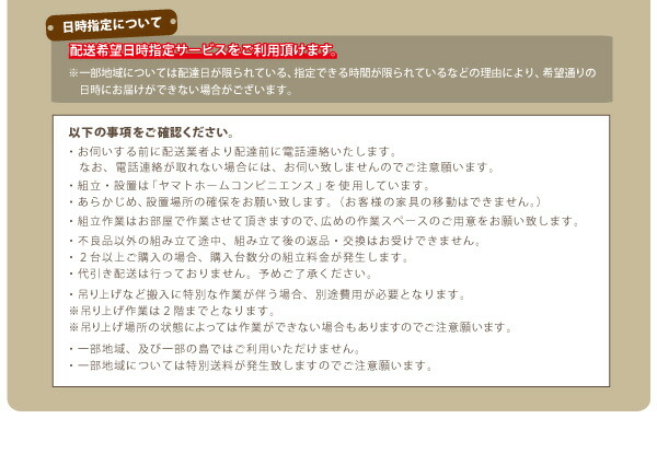 ※日時指定は到着予定を保証するものではございません。交通状況や配送会社の都合によりご依頼通りに配送ができな場合がございます。