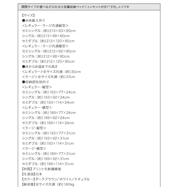 商品仕様: ダークブラウン、白 ホワイト、ナチュラルから選べる 収納付きベッド 収納 収納付き 収納ベッド 大容量 収納ボックス 布団 敷き布団 薄型スタンダードボンネ