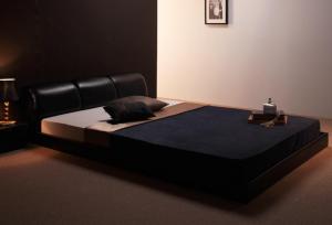 黒 ブラック モダンデザインフロアベッド 国産カバーポケットコイルマットレス付き セミダブル 組立設置付 組立設置付 国産カバーポケットコイルマットレス付き セミダブル