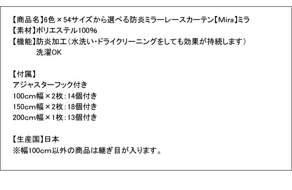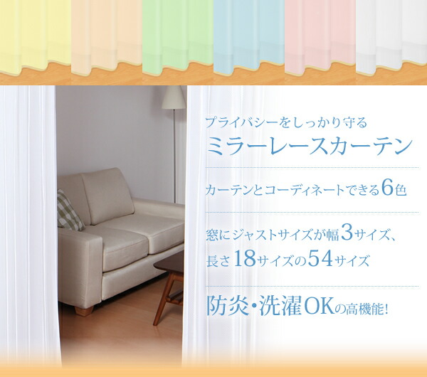 6色×54サイズから選べる防炎ミラーレースカーテン