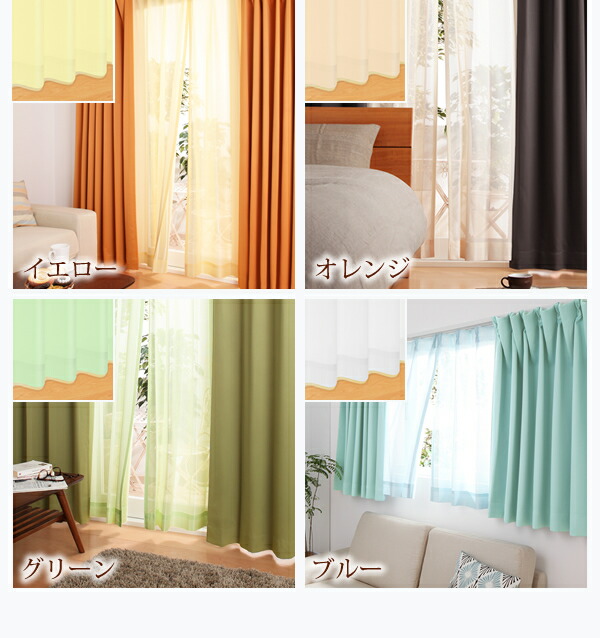 白 ホワイト、ピンク、オレンジ、黄色 イエロー、緑 グリーン、青 ブルーから選べる 遮光カーテン レースカーテン ブラインド 6色×54サイズから選べる防炎ミラーレースカーテン 1枚 幅200×208cm