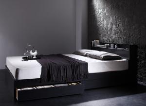 ダブルベッド 白 ホワイト、黒 ブラックから選べる 棚・コンセント付き収納ベッド スタンダードポケットコイルマットレス付き 組立設置付 組立設置付 スタンダードポケットコイルマットレス付き