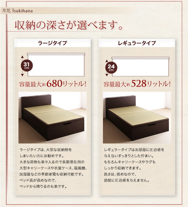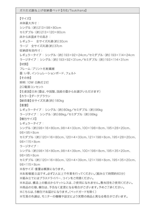 ガス圧式跳ね上げ収納畳ベッド【月花】ツキハナ