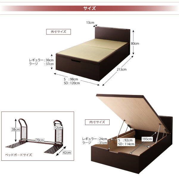 ダークブラウン 畳ベッド ベッド マットレス ベッドマットレス ベッドマット 圧縮梱包 腰 高反発 おしゃれ 布団 敷布団 抗菌 標準タイプ 縦開き・ベッドガードなし 深さラージ 組立設置付 組立設置付 国産タイプ 縦開き・ベッドガードなし セミダブル 深さラージ 畳X大容量収納