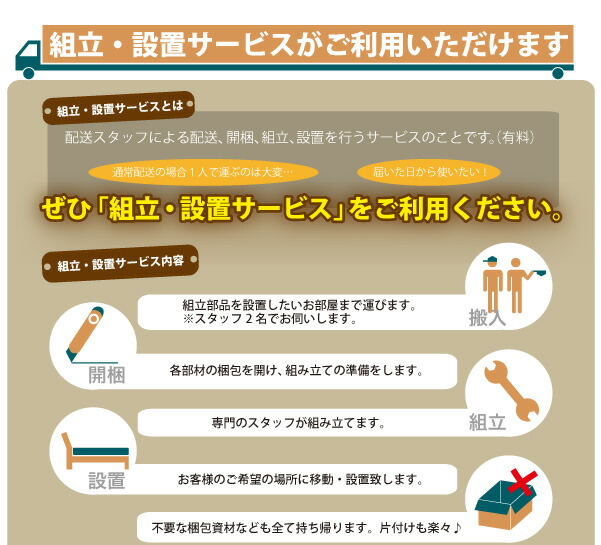 ●商品到着後7日以内の初期不良につきましては、メールにてご連絡ください。確認次第、速やかに無償交換にて対応いたします。ただし、組立を要する商品につき、組立サービス付き以外でのご注文の場合は、組立済み商品の解体・梱包および交換品到着後の再組立てをお客様ご自身で行っていただくことが前提となります。上記対応がいただけない場合、初期不良対応はいたしかねます。なお、こちらの商品は、ご注文後のキャンセル・内容変更、ならびに初期不良以外の交換・返品はお受けできません。ご注文の際は、内容を十分ご確認のうえお手続きくださいますようお願いいたします。