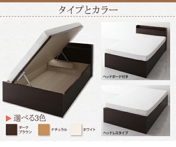 セミシングルベッド 茶色 ダークブラウン 茶 こげ茶、白 ホワイト、ナチュラルから選べる ベッド ショート丈 収納付きベッド マットレス付き 一人暮らし 収納 お客様組立 薄型スタンダードボンネルコイルマットレス付き 横開き ヘッドレス ショート丈 深さラージ