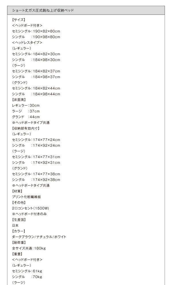 商品仕様: ベッド ショート丈 収納付きベッド マットレス付き 一人暮らし 収納 お客様組立 薄型スタンダードボンネルコイルマットレス付き 横開き ヘッドレス セミシングルベッド ショート丈 深さラージ