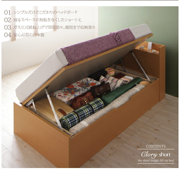 ショート丈ガス圧式跳ね上げ収納ベッド