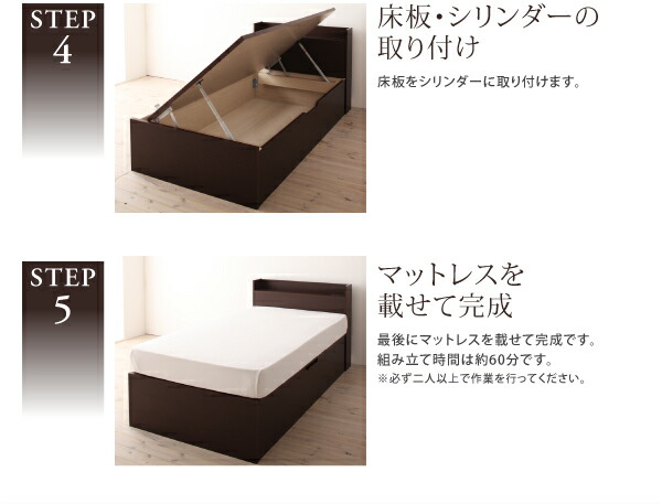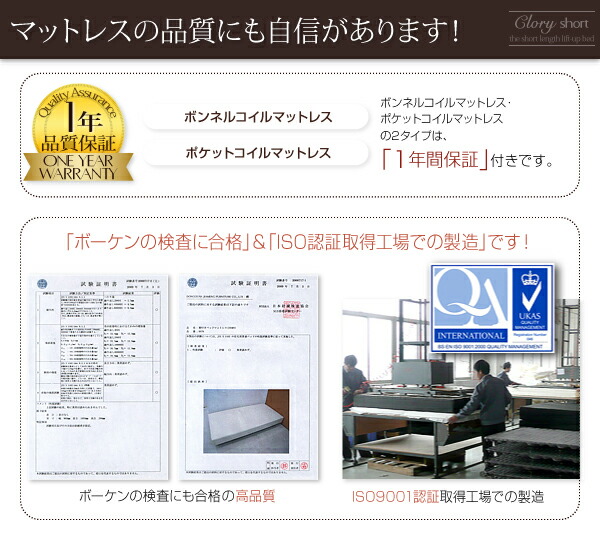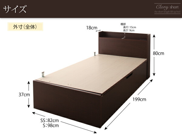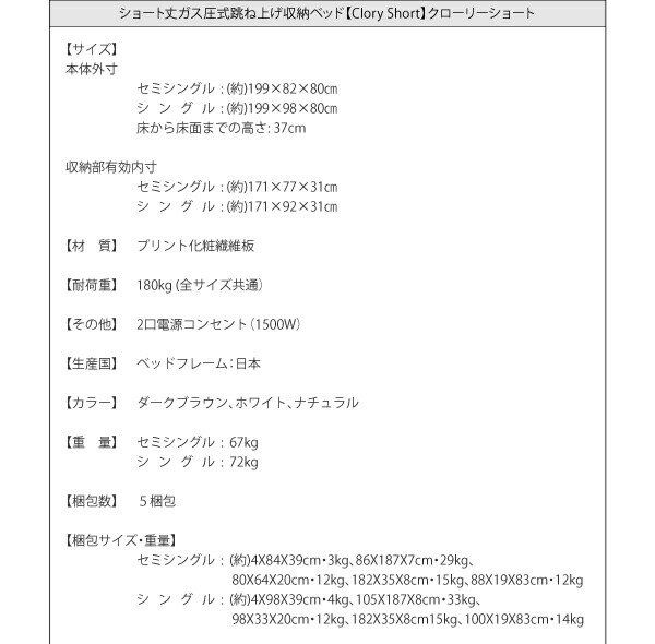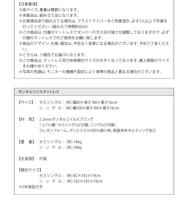 商品仕様: お客様組立 国産 日本製 国産跳上げ収納ベッド 薄型スタンダードボンネルコイルマットレス付き 横開き セミシングルベッド ショート丈 深さラージ