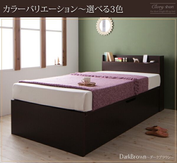 セミシングルベッド 茶色 ダークブラウン 茶 こげ茶、白 ホワイト、ナチュラルから選べる お客様組立 国産 日本製 国産跳上げ収納ベッド 薄型スタンダードボンネルコイルマットレス付き 横開き ショート丈 深さラージ 小さいだけじゃない、私のお気に入りベッド