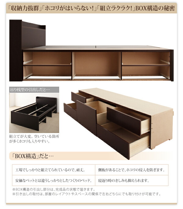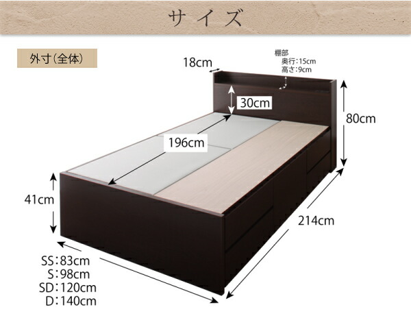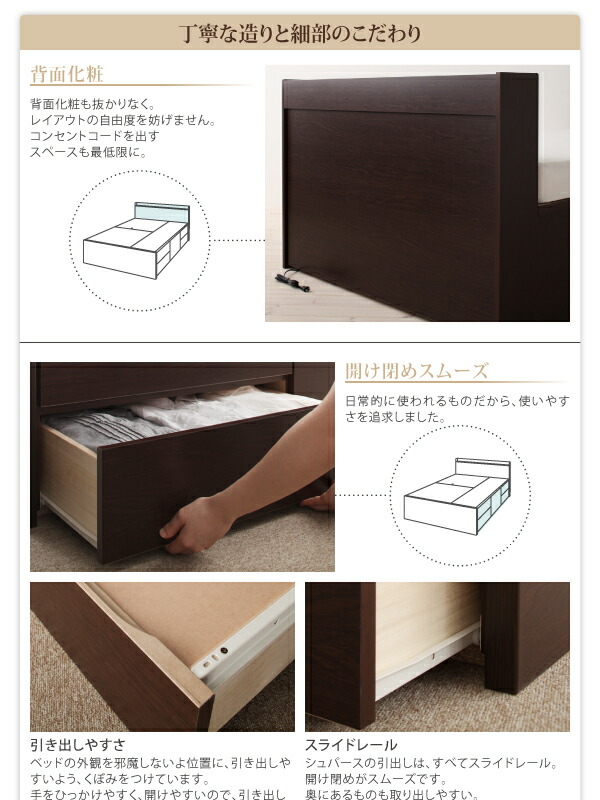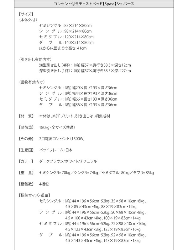 商品仕様: お客様組立 コンセント付きチェストベッド 薄型プレミアムボンネルコイルマットレス付き ダブルベッド