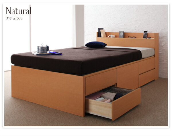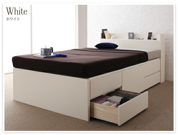 ダブルベッド 茶色 ダークブラウン 茶 こげ茶、ナチュラル、白 ホワイトから選べる お客様組立 コンセント付きチェストベッド 薄型プレミアムボンネルコイルマットレス付き