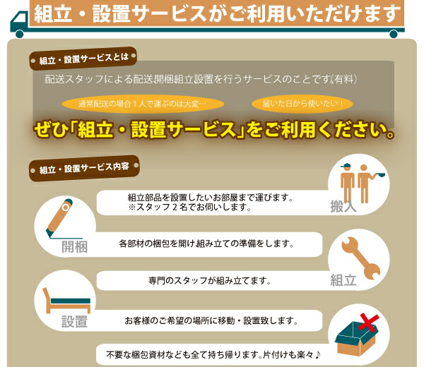 ●商品到着後7日以内の初期不良につきましては、メールにてご連絡ください。確認次第、速やかに無償交換にて対応いたします。ただし、組立を要する商品につき、組立サービス付き以外でのご注文の場合は、組立済み商品の解体・梱包および交換品到着後の再組立てをお客様ご自身で行っていただくことが前提となります。上記対応がいただけない場合、初期不良対応はいたしかねます。なお、こちらの商品は、ご注文後のキャンセル・内容変更、ならびに初期不良以外の交換・返品はお受けできません。ご注文の際は、内容を十分ご確認のうえお手続きくださいますようお願いいたします。
