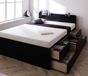 セミダブルベッド 黒 ブラック ベッドフレーム マットレス付き 収納付き 収納 収納ベッド グレー 灰色 薄型スタンダードボンネルコイルマットレス付き 組立設置付 組立設置付 薄型スタンダードボンネルコイルマットレス付き 棚・コンセント付き_大容量チェストベッド