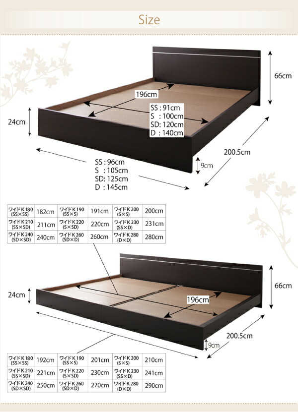 商品仕様: ずっと使えるロングライフデザインベッド ポケットコイルマットレス付き ワイドK200