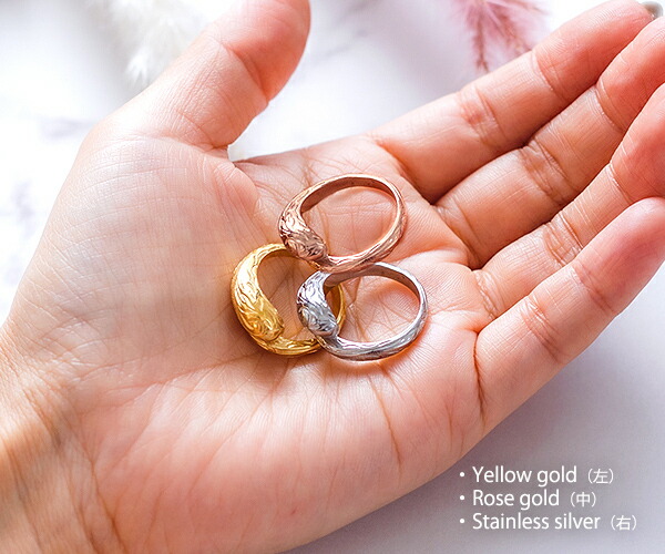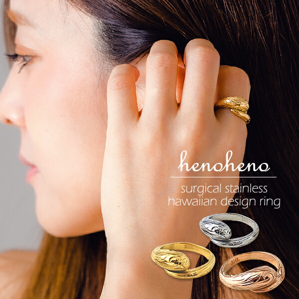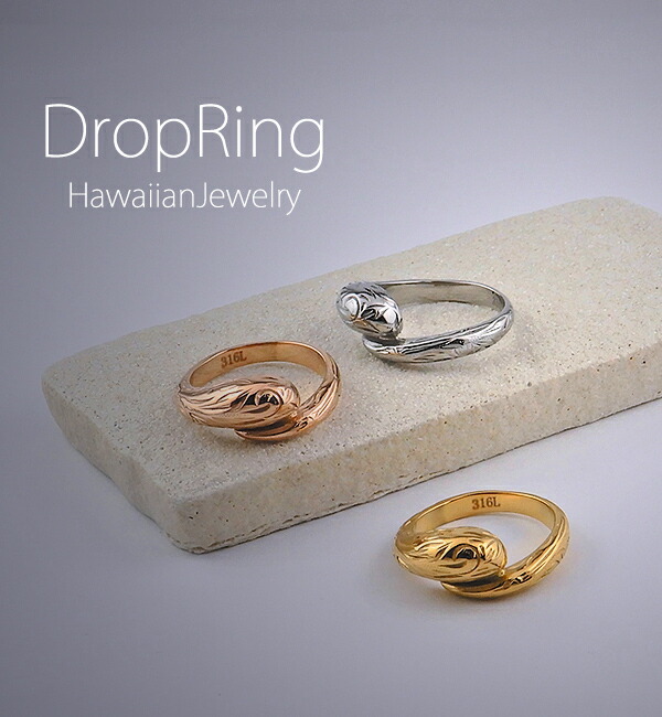 ハワイアンジュエリー リング 指輪 レディース しずく ドロップ 丸み デザインリング おしゃれ 上品 シンプル メンズ ステンレス サージカルステンレス 金属アレルギー対応 大きいサイズ ローズゴールド シルバー イエロー ブランド henoheno