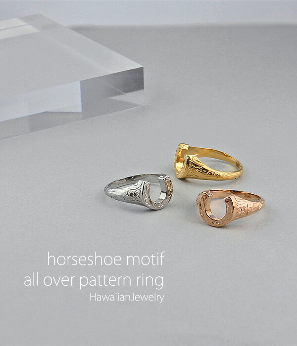 | 馬蹄(ホースシュー)をモチーフにハワイアン模様をあしらったハワイアンリング。 ハワイの代表的なプルメリアの花や 幸運をもたらすとされているスクロール(波)がデザインされています。 また、リング全体にはハワイアン模様がデザインされているので、 どこから見られても美しい。 ジェンダーレスなデザインとちょうどいいサイズ感なので、プレゼントにもオススメ。 リングサイズは、大きいサイズもあるので オシャレなペアリングとしてもお使いいただけます。 | ||||