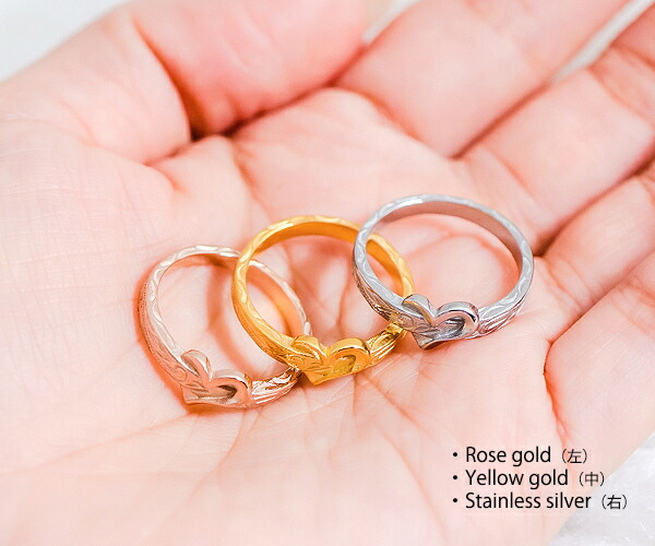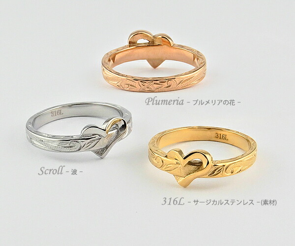ステンレス リング ハワイアンジュエリー 指輪 ハート プルメリア スクロール 金属アレルギー対応 つけっぱなし ライン レディース 重ねづけ サージカルステンレス 大人 メンズ 大きいサイズ ローズゴールド シルバー イエロー henoheno