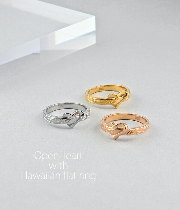| シンプルなハワイアンリングにハートをプラスした大人カワイイリング。 リングにはプルメリアやスクロールがデザインされていて、 甘くなりがちなオープンハートに オトナのスパイスをちょっぴりきかせたハワイアンリング。 ただカワイイだけじゃない大人のハートリング。 | ||||
