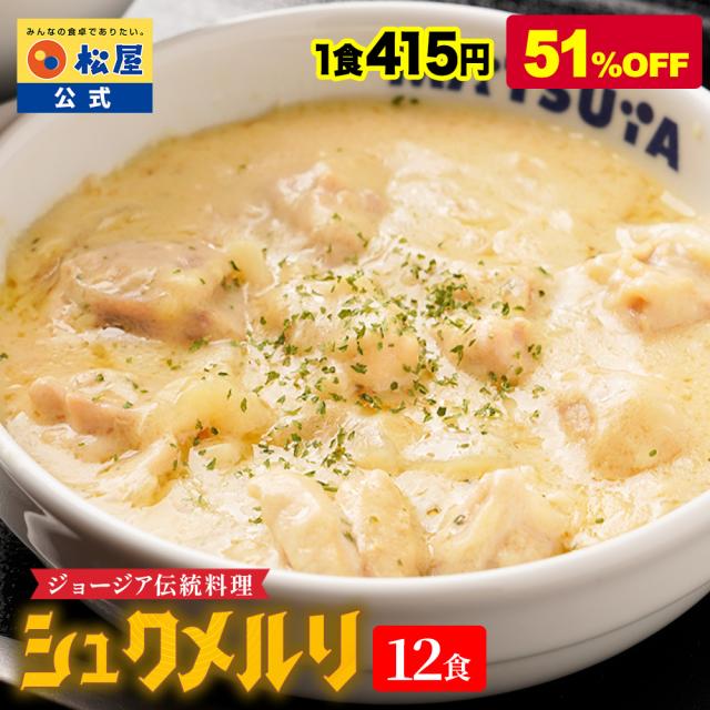 【訳あり特別価格!衝撃の51%OFF】 松屋 シュクメルリ 12食 松屋復刻メニュー総選挙1位 お取り寄せ お惣菜 おかず セット 冷凍食品 食品 保存食 グルメ 松屋 まつや 非常食 2026年5月賞味期限の商品を含みます。
