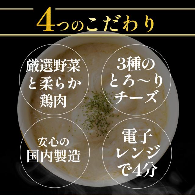 【原材料】牛乳(国産)、鶏肉、たまねぎ、ナチュラルチーズ、ニンニク、ホワイトソースルウ、ソテーオニオン、ファットスプレッド、にんにくエキス、醤油、レモン果汁、クリーミングパウダー、食塩/セルロース、カゼイン、香料、pH調整剤、乳化剤、酒精、カロチン色素、(一部に小麦・乳成分・大豆・鶏肉・豚肉を含む)