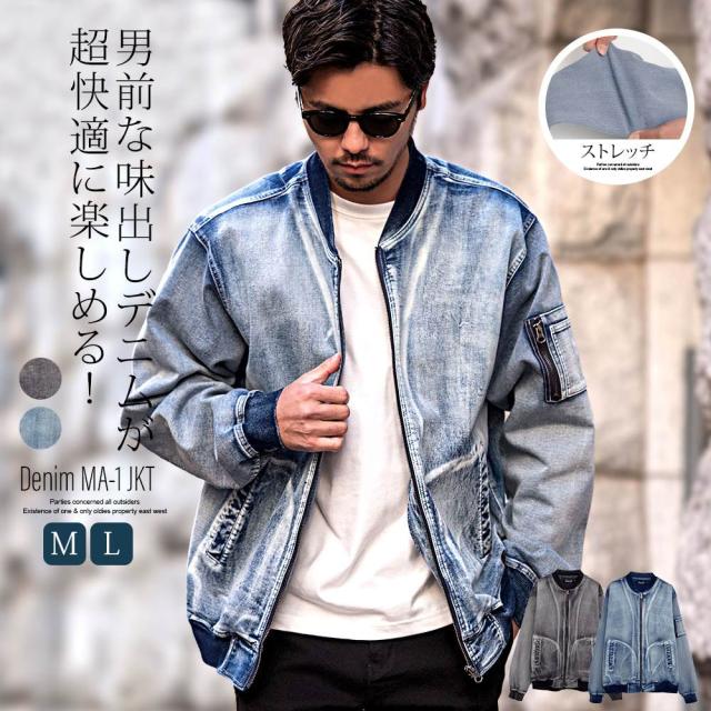MA-1ジャケット メンズ アウター おしゃれ MA-1 MA1 デニムジャケット ブルゾン ミリタリージャケット ストレッチ 伸縮 ヴィンテージ ビンテージ 古着風 ユーズド 大きいサイズ CavariA ブランド 20代 30代 40代 ユニセックス 男性 男 服 冬 春 ファッション [CATN24-10]